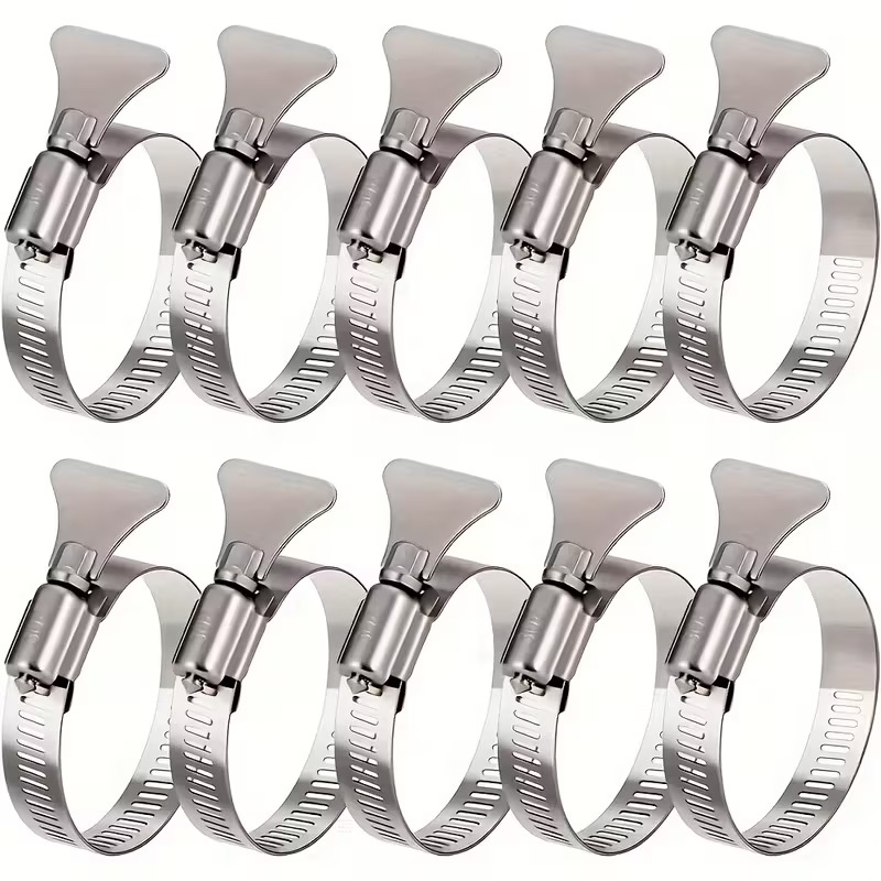 This set of ten stainless steel worm gear hose clamps provides secure and adjustable connections for water pipes, hoses, and automotive applications. Designed to fit diameters from 16mm to 25mm, each clamp can be easily tightened or loosened using a standard screwdriver. The durable stainless steel construction ensures resistance to rust, corrosion, and long-term wear, making these clamps suitable for plumbing, automotive repairs, and general mechanical maintenance. Their versatile design allows for reliable use in both residential and professional settings.